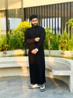 Black Indonesian Thobe is a stunning piece made for people who appreciate tradition and style. Step into timeless sophistication with Guraba. This thobe, which is ideal for any occasion, is made from high-quality Pakistani Grace fabric and provides unmatched comfort and a hint of luxury.